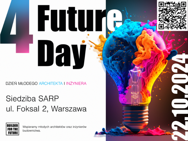 Już 22 października 2024 odbędzie się kolejna edycja 4FUTUREDAY Dzień Młodego Architekta i Inżyniera Budownictwa. Wydarzenie będzie miało miejsce w siedzibie Stowarzyszenia Architektów Polskich w Warszawie (ul. Foksal 2). Organizatorem 4FutureDay jest miesięcznik Builder. Serdecznie zapraszamy Wykładowców wraz z grupami studentów do udziału w 4FutureDay! Udział w wydarzeniu jest bezpłatny.