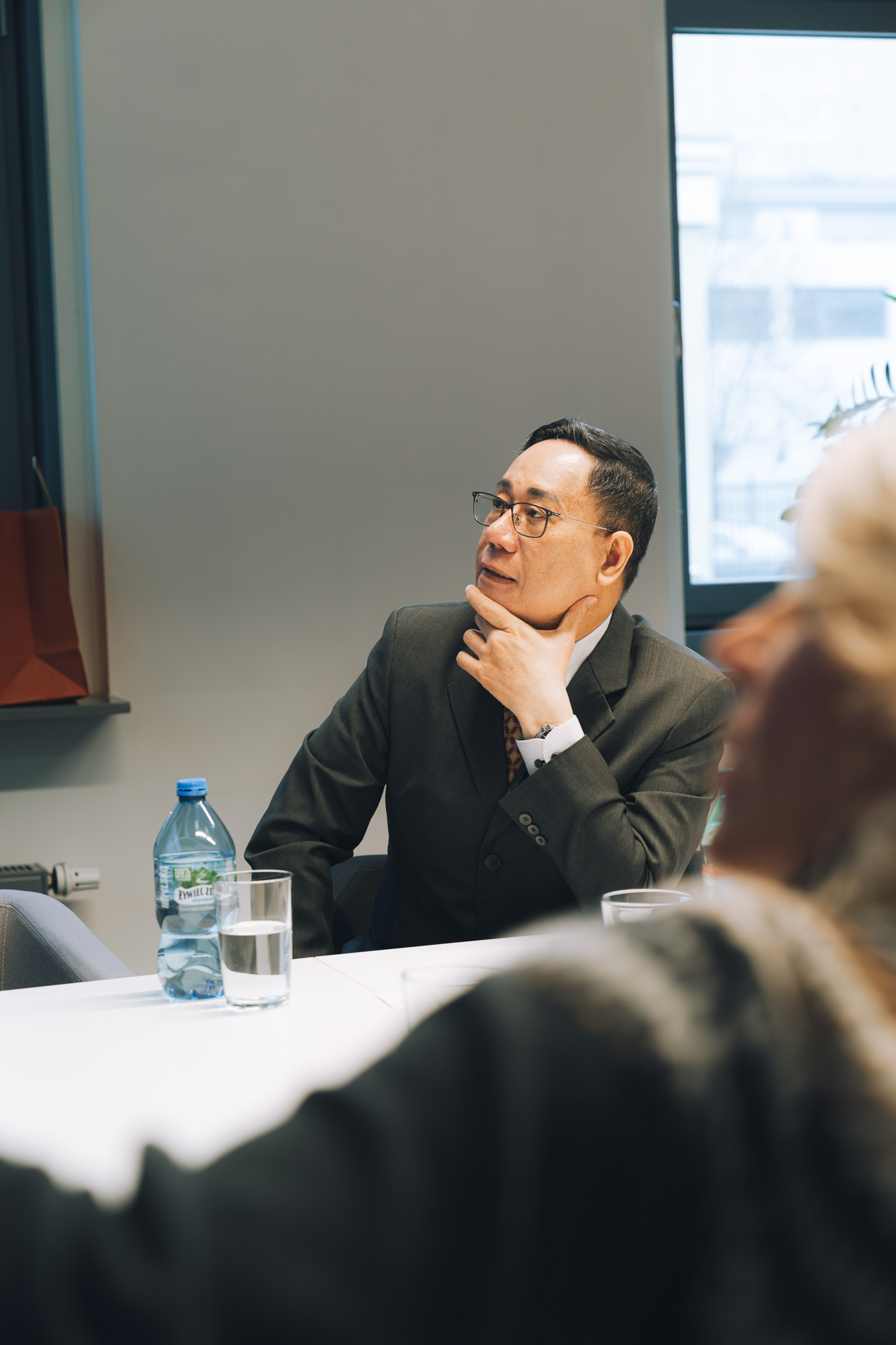 Podczas spotkania zaprezentowaliśmy Ambasadorowi ofertę dydaktyczną Akademii, w tym kluczowe kierunki studiów oraz ich praktyczny charakter. Rozmawiano o potrzebach i oczekiwaniach kandydatów z Filipin, a także o możliwościach stworzenia programów wymiany akademickiej oraz wspólnych inicjatyw edukacyjnych.
