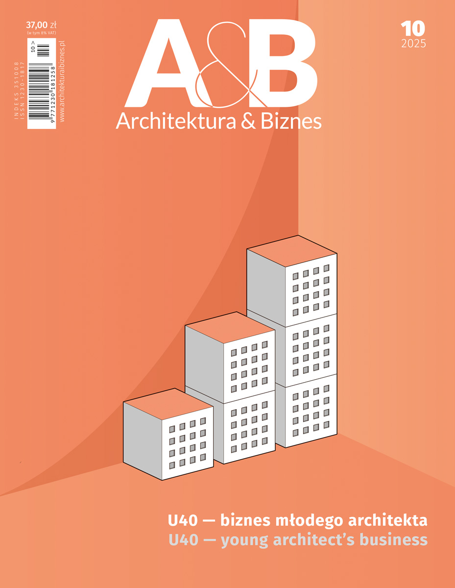 Ale numer! Październikowe wydanie A&B wzięli w swoje ręce młodzi architekci i architektki — zebrali swoje doświadczenie, zdradzili sekrety, odkryli tajniki biznesu, bez tabu i owijania w bawełnę wyłożyli karty na stół i tak powstał numer: U40 — BIZNES MŁODEGO ARCHITEKTA
