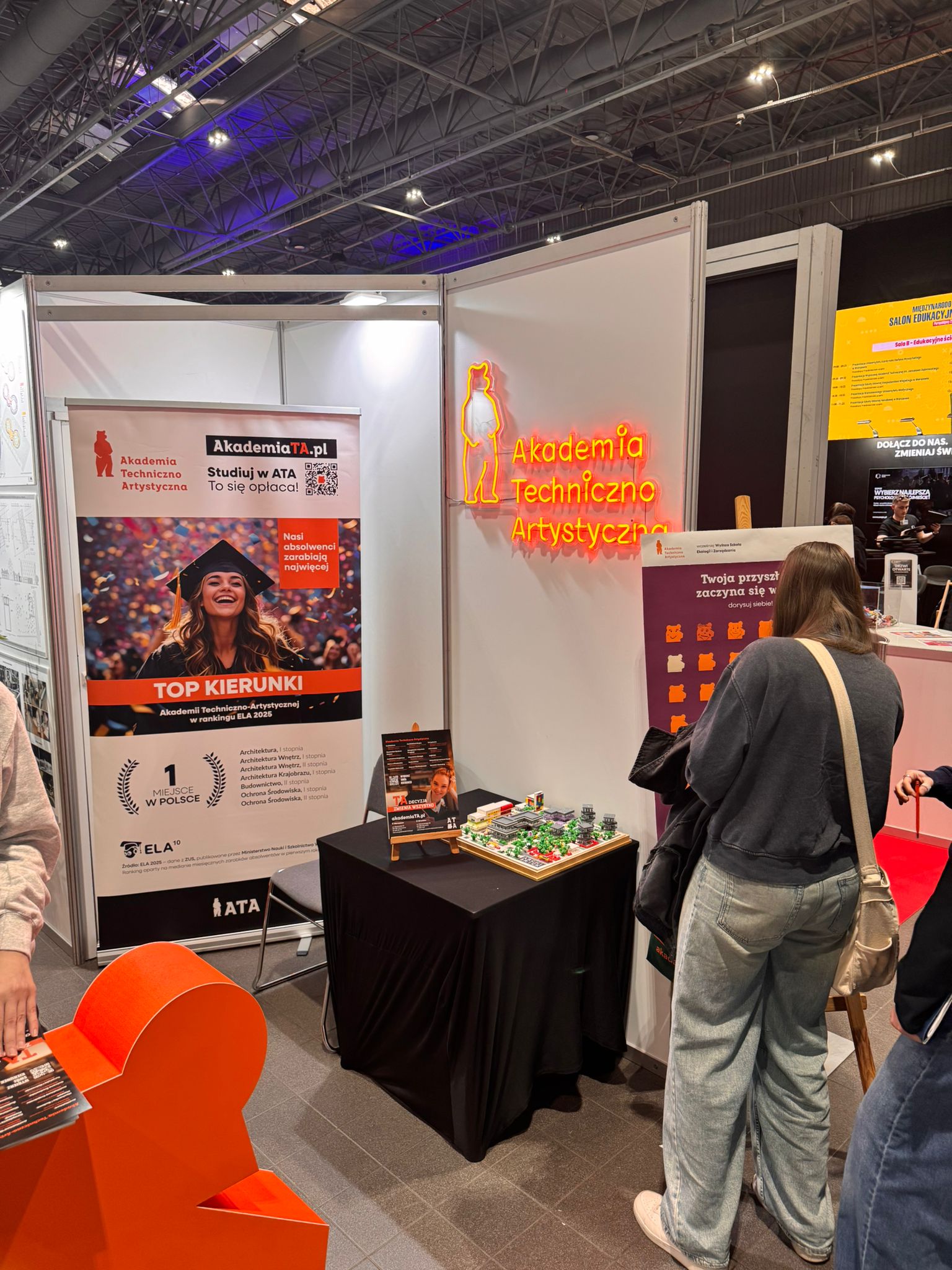 Nasze stoisko cieszyło się ogromnym zainteresowaniem maturzystów oraz młodszych uczniów planujących swoją ścieżkę edukacyjną. Odwiedzający mieli okazję zapoznać się z szeroką ofertą kierunków studiów, możliwościami rozwoju oraz perspektywami zawodowymi, jakie oferuje ATA.