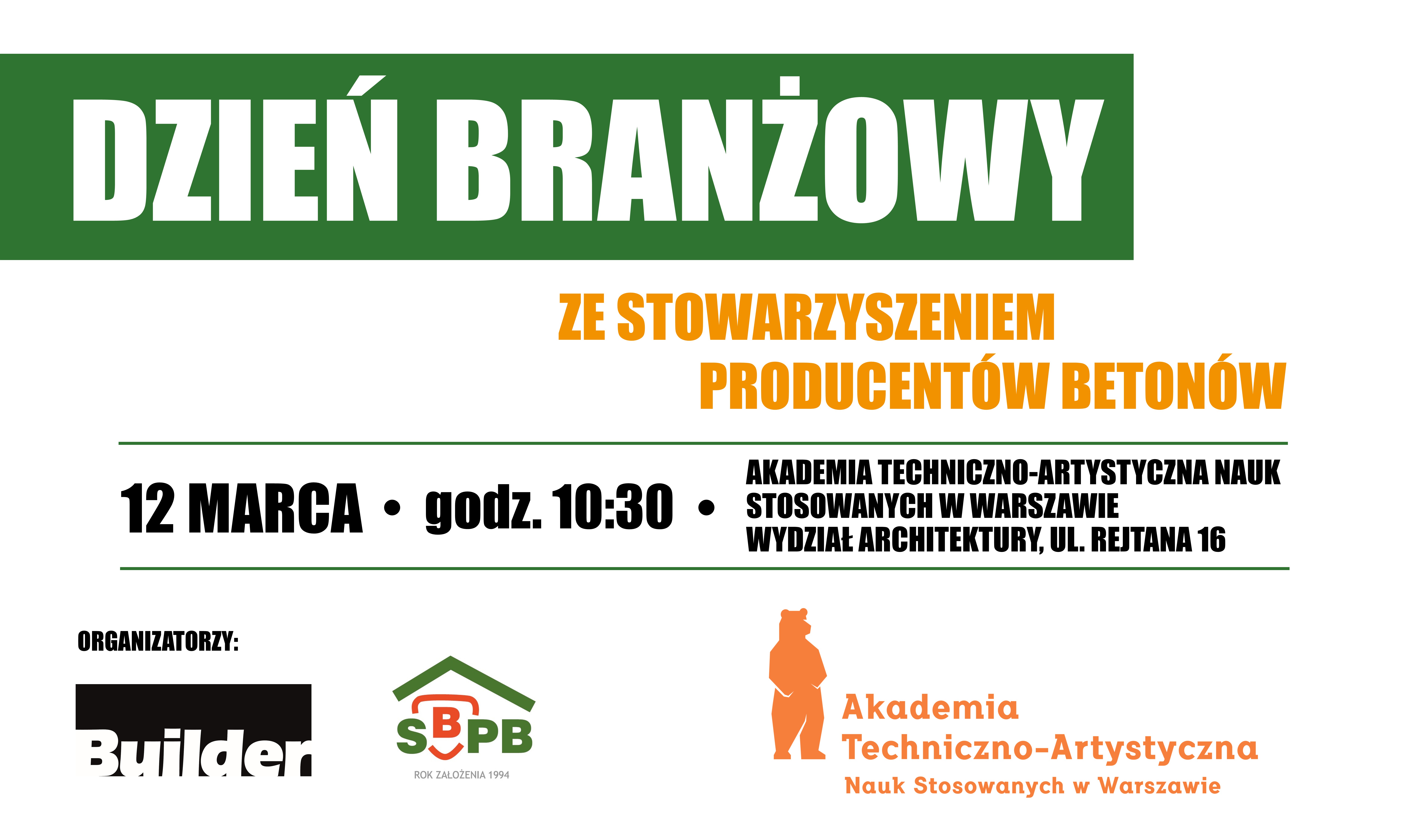w dniu 12 marca (czwartek) na Wydziale Architektury Akademii Techniczno-Artystycznej Nauk Stosowanych w Warszawie odbędzie się „Dzień Branżowy – Dwa oblicza, jedna przyszłość betonu komórkowego i prefabrykacji betonowej”. Wydarzenie jest organizowane przez Stowarzyszenie Producentów Betonów, Miesięcznik Builder oraz Wydział Architektury Akademii Techniczno-Artystycznej Nauk Stosowanych w Warszawie w ramach III edycji programu „Dwa oblicza, jedna przyszłość betonu komórkowego i prefabrykacji betonowej”.