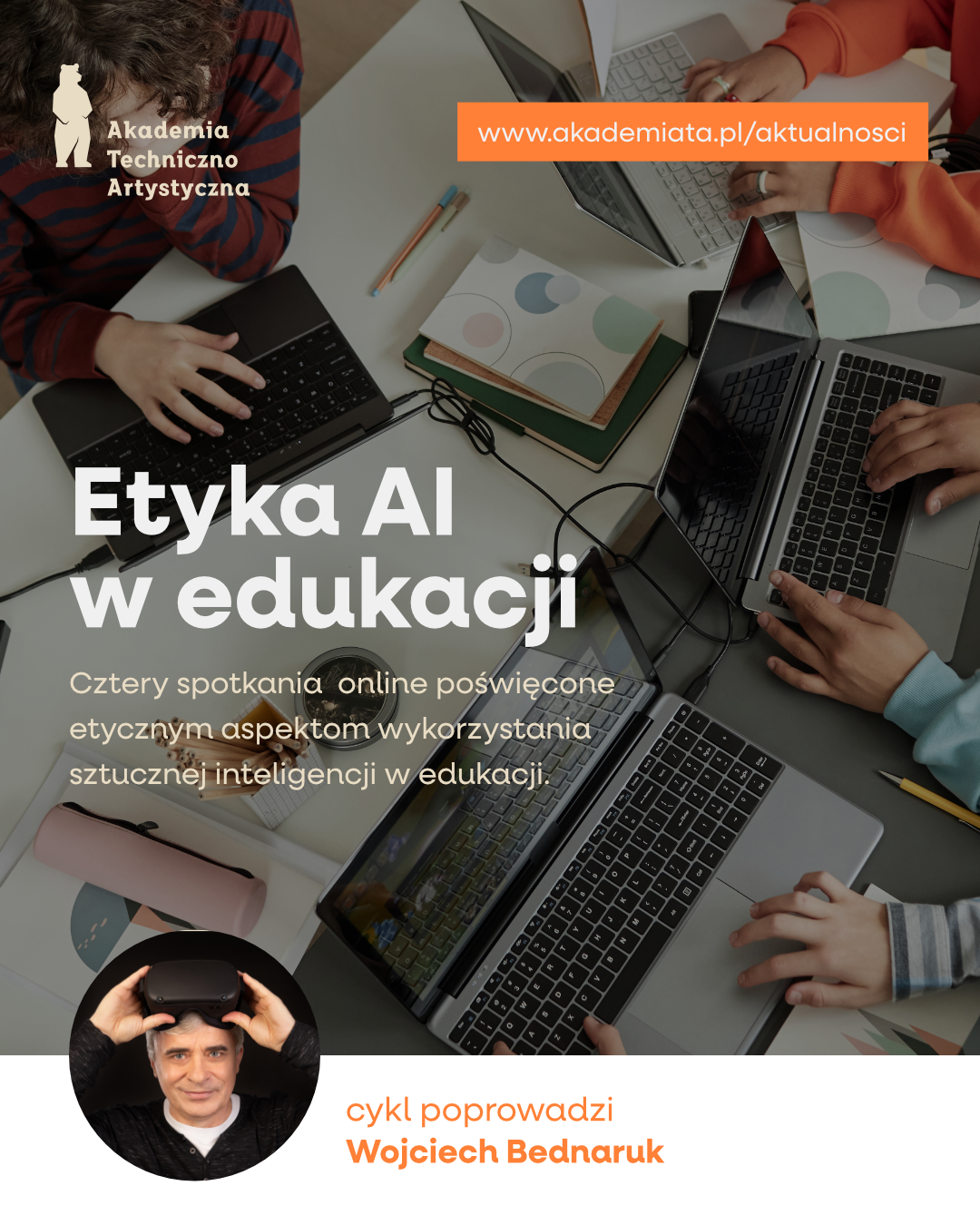 ATA zaprasza studentów oraz nauczycieli akademickich do udziału w cyklu „Etyka AI w edukacji” – czterech spotkaniach online poświęconych etycznym aspektom wykorzystania sztucznej inteligencji w edukacji. To inicjatywa wpisująca się w odpowiedzialne i świadome podejście ATA do nowych technologii oraz ich miejsca w nowoczesnym kształceniu.
