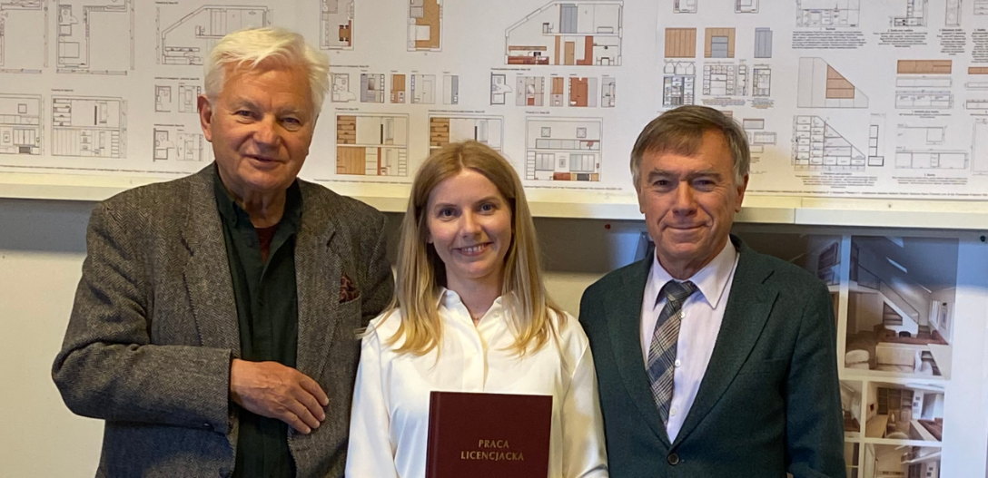 Praca dyplomowa Pani Katarzyny pt. „Projekt studyjno-koncepcyjny wnętrz pracowni artystycznej z aneksem mieszkalnym w kamienicy przy alei Jerzego Waszyngtona 69 w Warszawie” powstała pod opieką promotora prof. dr. hab. Przemysława Krajewskiego.