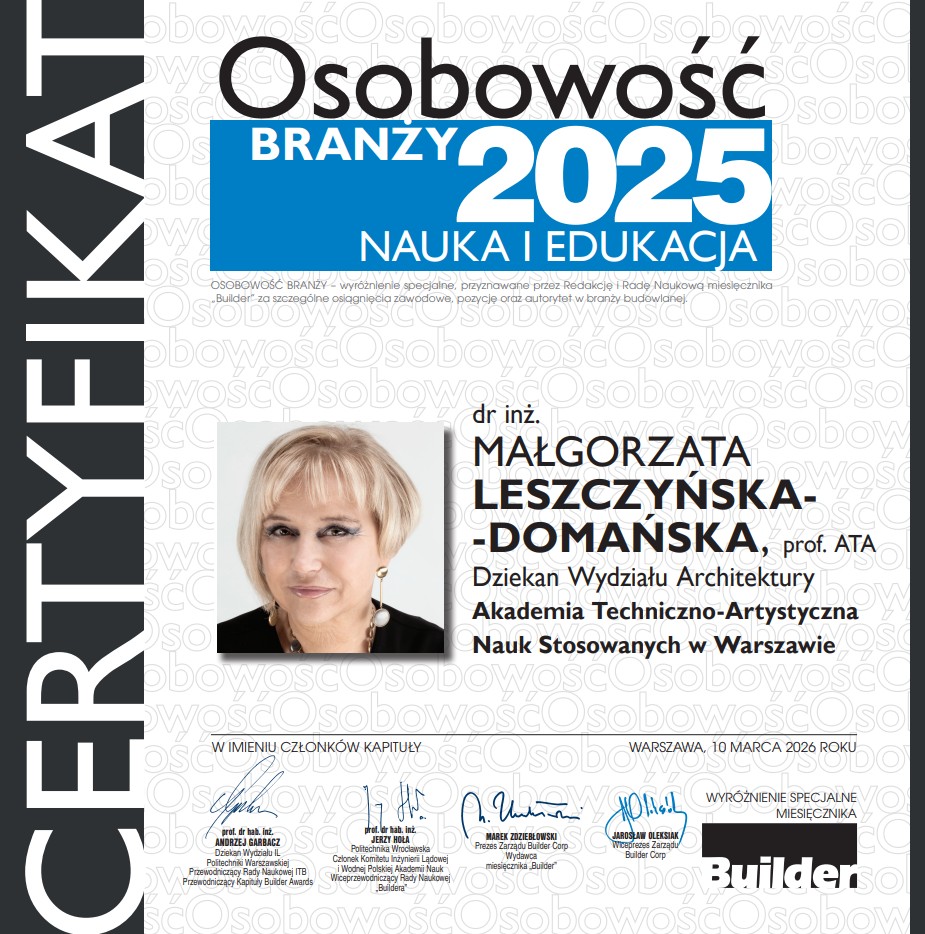 • Tytuł Osobowości Branży dla Pani Dziekan Wydziału dr inż. Małgorzaty Leszczyńskiej-Domańskiej – to prestiżowe wyróżnienie jest wyrazem uznania dla wizji, charyzmy oraz determinacji Pani Dziekan w budowaniu mostów między światem nauki a biznesem. To nagroda za liderstwo, które inspiruje nie tylko studentów, ale i całe środowisko eksperckie.