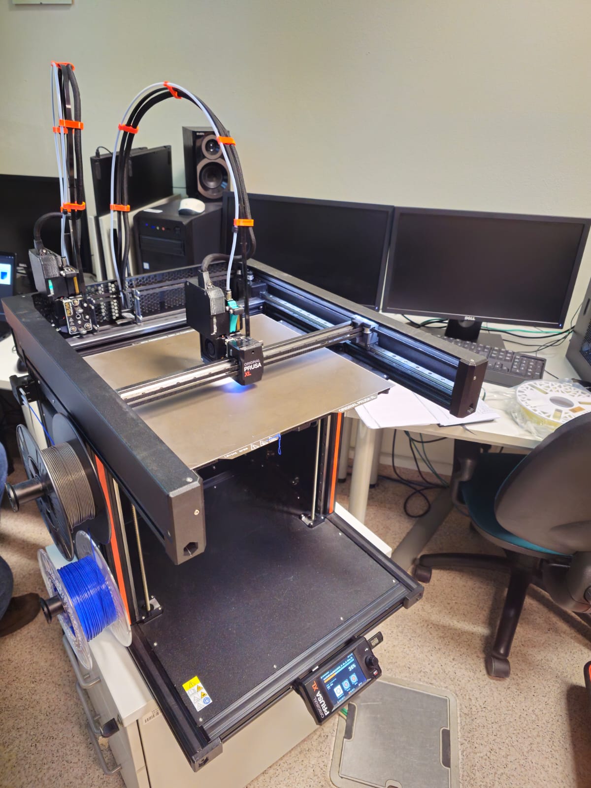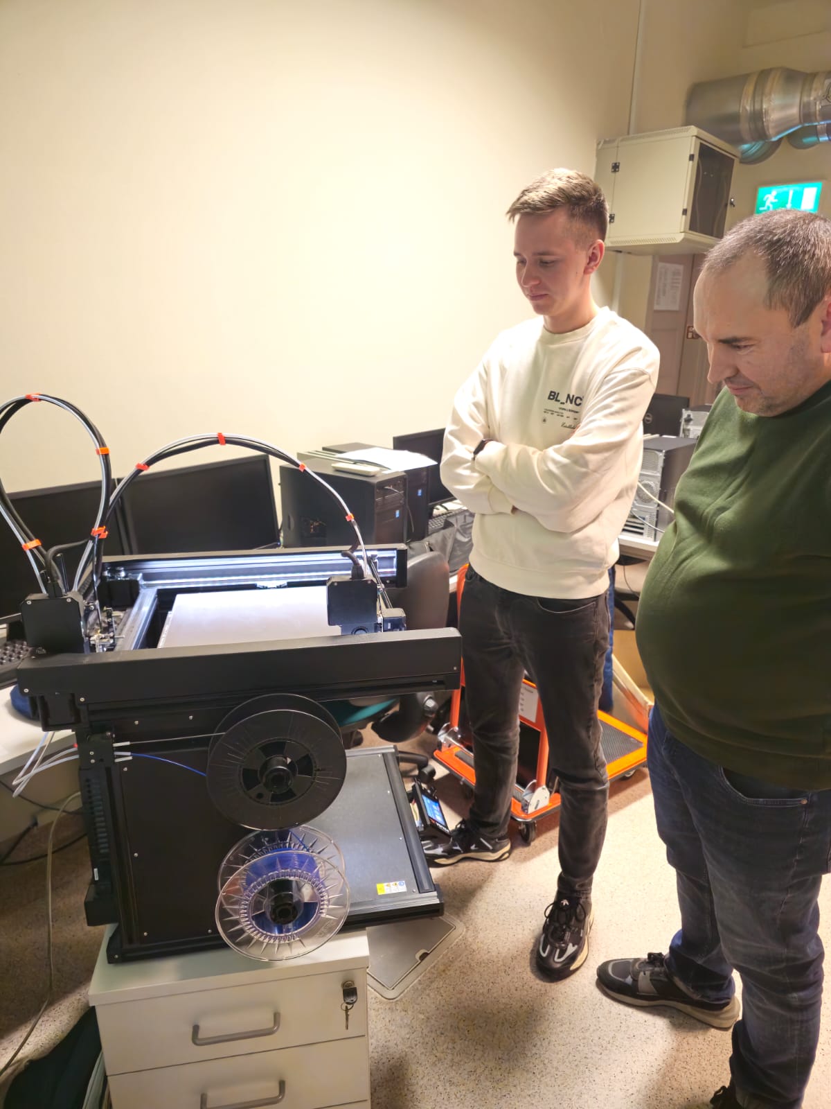 Warsztaty obejmowały także prezentację drukarki wielogłowicowej, możliwości oraz różnic w jakości i prędkości wydruku. Prowadzący podzielili się praktycznymi wskazówkami dotyczącymi najczęściej popełnianych błędów w procesie drukowania oraz sposobów na zwiększenie wytrzymałości elementów drukowanych w warunkach domowych.