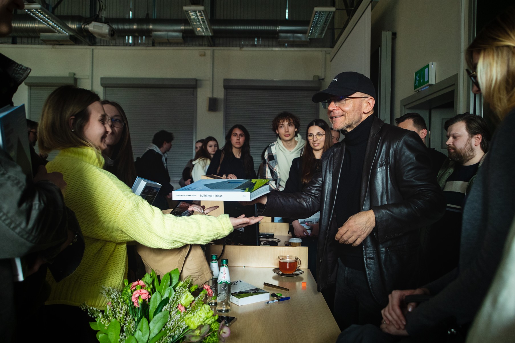 📅 28. marca jeden z najbardziej utytułowanych polskich architektów – Robert Konieczny – wygłosił inauguracyjny wykład „Warto ścigać się ze Światem”. Gość podzielił się z uczestnikami historią swojej drogi zawodowej, zwracając uwagę na punkty zwrotne, które ukształtowały go jako architekta i wpłynęły na dobór realizowanych projektów.