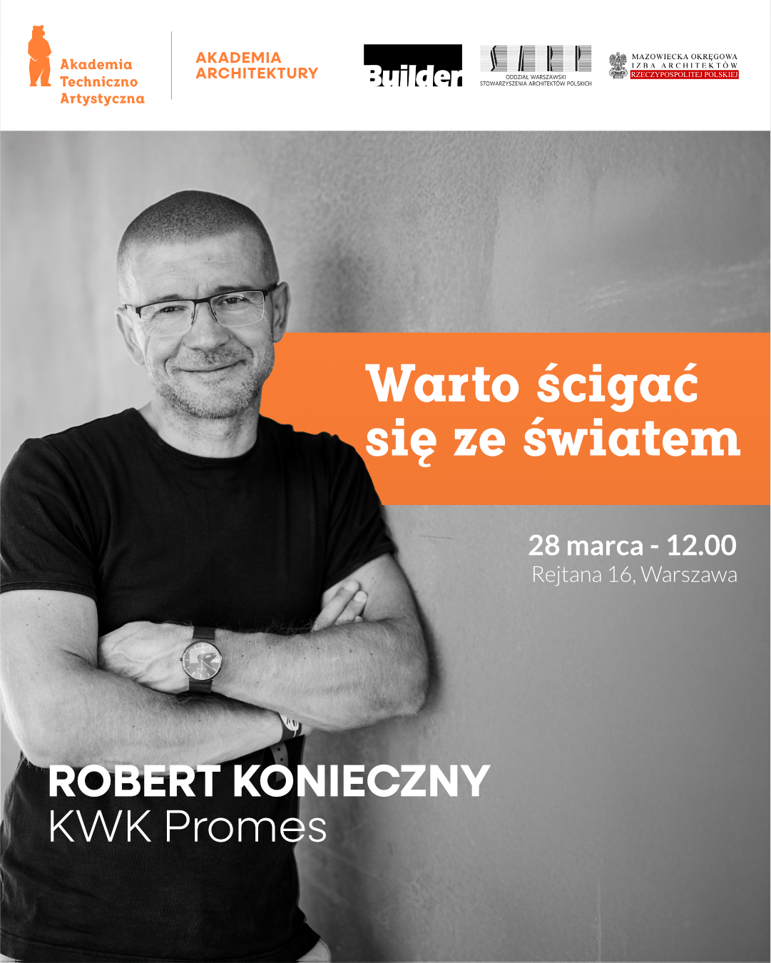 Naszym pierwszym gościem będzie jeden z najbardziej utytułowanych polskich architektów na świecie – Robert Konieczny, który wygłosi wykład pt. „Warto ścigać się ze Światem”.