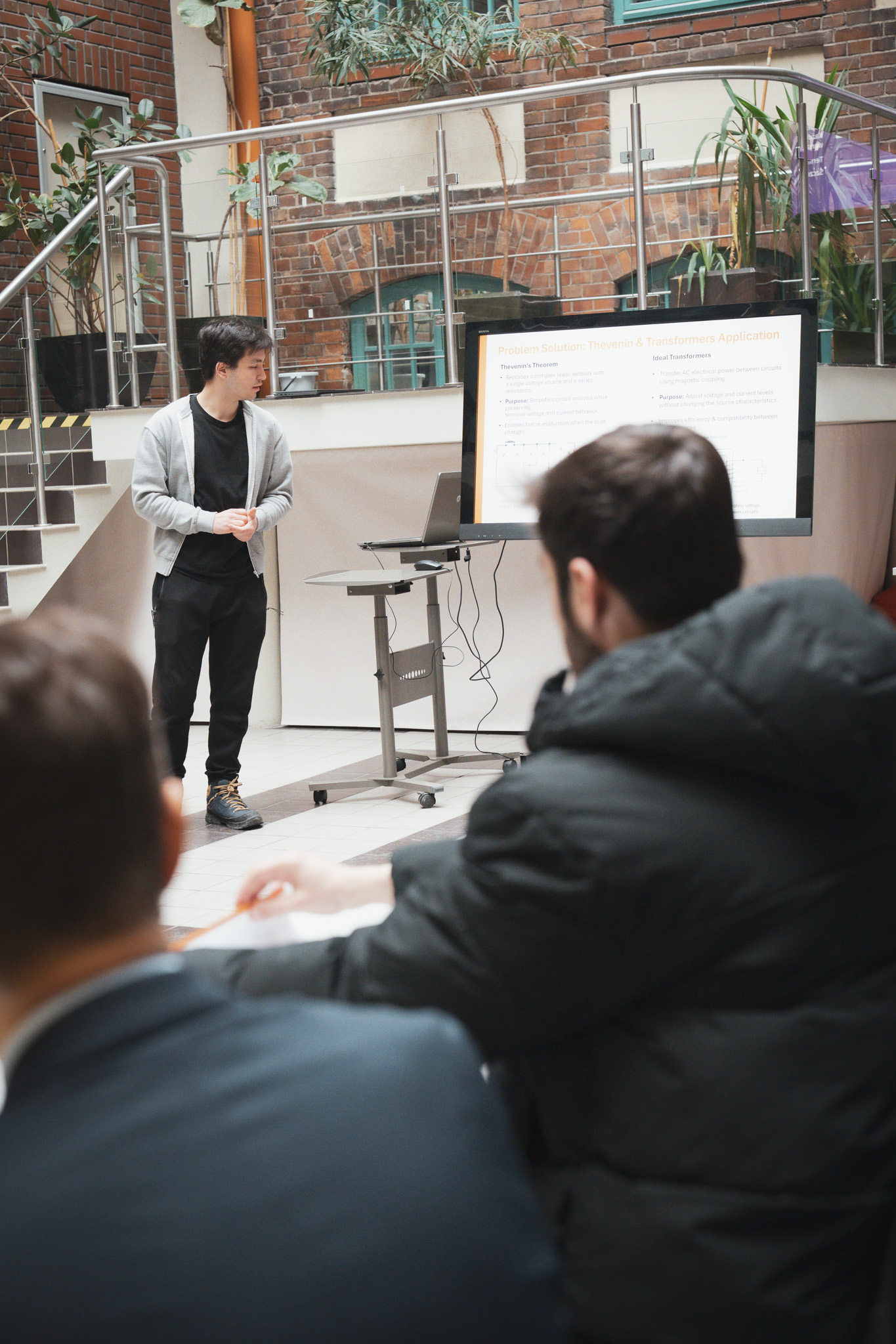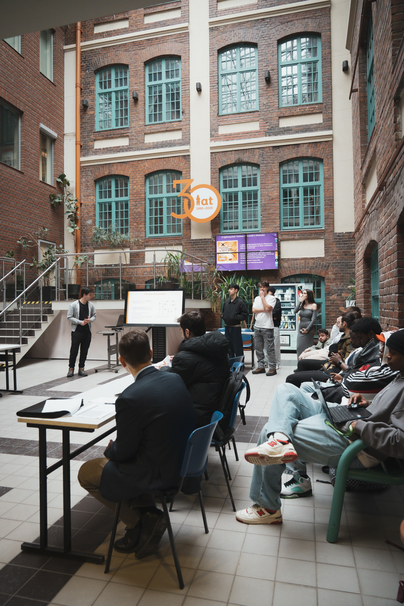 Atrium wypełniło się studentami Computer Science, którzy z pasją prezentowali efekty swojej pracy. Każdy z pięciu paneli tematycznych był solidną dawką wiedzy, podzieloną na logiczne etapy: od punktu wyjścia, przez stan obecny, aż po  kierunki rozwoju i wyzwania wdrożeniowe.