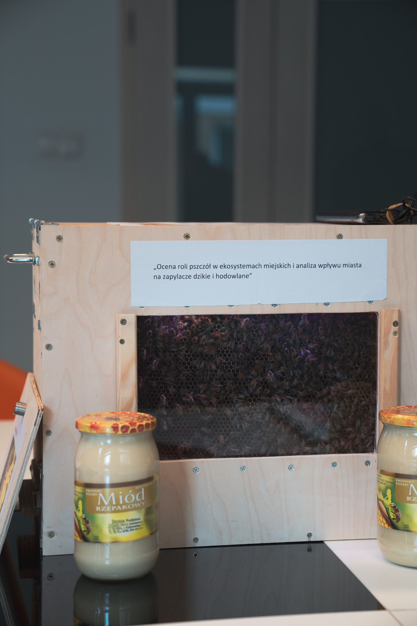 Pan inżynier zaprezentował pracę pt. „Ocena roli pszczół w ekosystemach miejskich i analiza wpływu miasta na zapylacze dzikie i hodowlane”, wykazując się nie tylko wiedzą merytoryczną, ale i wyjątkową kreatywnością. Częścią prezentacji był pokazowy ul z żywymi pszczołami, który pozwolił komisji w praktyce zaobserwować omawiane w pracy zjawiska.