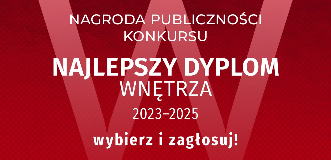 Zachęcamy do głosowania na najlepszy projekt dyplomowy — Nagrodę Publiczności czwartej edycji konkursu „Najlepszy Dyplom — WNĘTRZA”. Aby wskazać swojego faworyta lub swoja faworytkę, wystarczy oddać swój głos — głosować można tylko raz, na jeden projekt*. Głosowanie trwa od 6 października do 9 listopada br. do godz. 23:59. Autor lub autorka pracy z największą liczbę głosów otrzyma dyplom i roczną prenumeratę miesięcznika „A&B”.